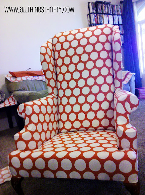 Holy cow! How adorable. I love your fabric choice. {My mom used to call it "polky dot.} Both our orange chairs were featured on an upholstery post at blogsbabble.com. I'm crazy about the way yours turned out, so I hopped over to tell you.