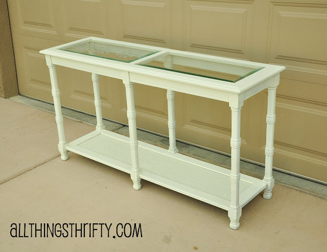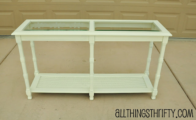 I got this sofa table at a local yard sale, and I prepped the table by washing all the dust and grime off with soap and water. I made sure that the table was completely dry before I began spraying with the Dual Ivory Gloss.