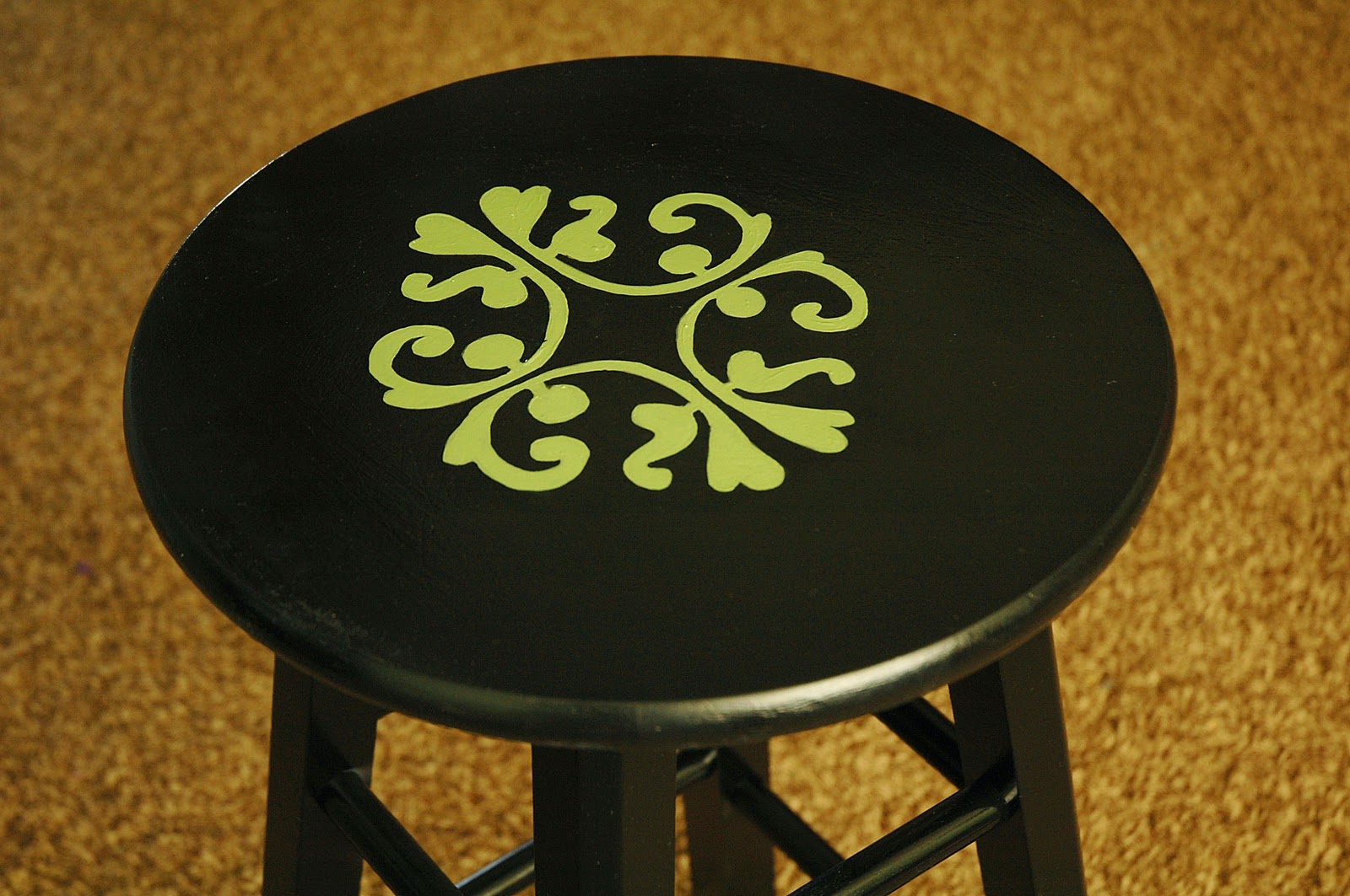 She used one of the stencil templates that I posted about awhile ago, and transformed her bar stools from drab to FAB!