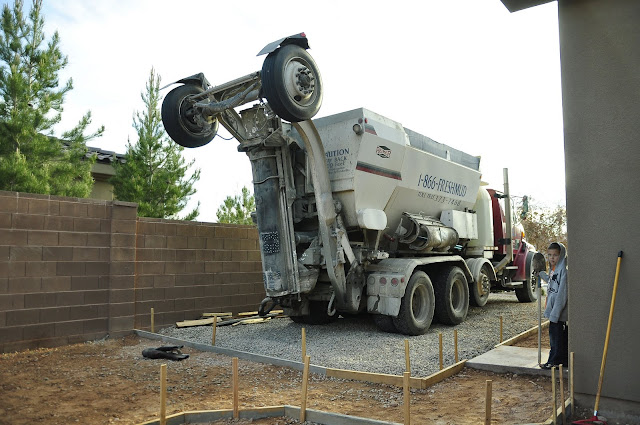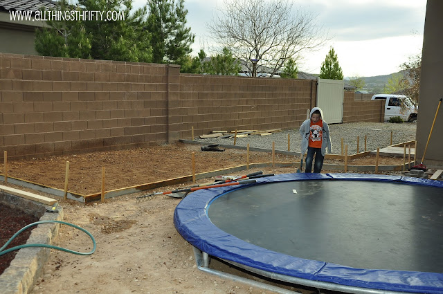 The guys from Rocky Mountain Materials (866-FRESHMUD) were very nice, and even more importantly SUPER fast. They backed up the cement truck right into our side yard and within minutes were ready to start pouring! It was so fun to see the transformation! (Sidenote: I don’t have a sponsorship relationship with Rocky Mountain Materials, but when I have a great experience with a supplier, I like to share it with my readers.)
