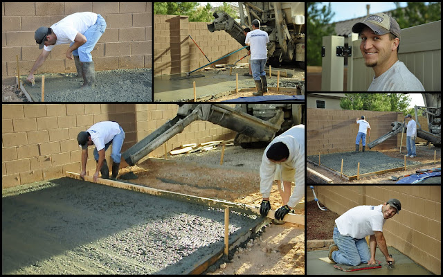 My neighbor and my Hubby did the finish work of the concrete, and I have to say that I HAD NO IDEA how much work this would be. Holy cow. It was amazing how hard these boys worked.