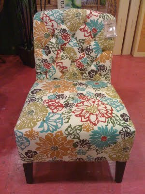 I am in the middle of reupholstering my kitchen chairs that I scored off Craigslist and have been searching for a big floral print with red, black, green, and blue. I love your chair and that fabric. Did you get that at JoAnn's? Is it a Home Decor fabric or is it a sewing cotton fabric? I'd really like to know where I can but it.