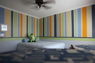 Her little boy loves penguins and wanted a Surfin’ Penguin room. She found surfboard wallpaper and glued on penguins to go with her theme. So cute!