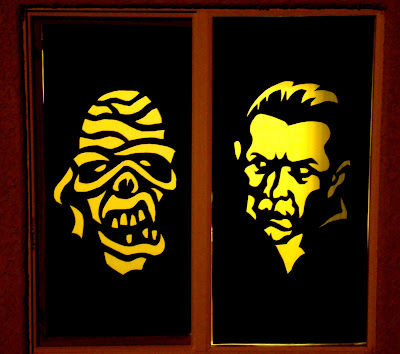 All you have left is to hang them in the window and black out the rest of the window with remaining butcher paper.
