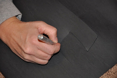 After I picked several patterns, I got to work tracing the patterns onto the black paper by hanging the paper onto the wall in my garage and projecting the patterns onto the paper. (I pulled up the patterns on my laptop and hooked up a projector to the laptop). WARNING: make sure that you know the size of your windows before you project the pattern onto the paper. You want to make sure that the pattern isn’t too big or it won’t fit in your window. Also, I used a piece of white crayon to trace the patterns because it was much easier to see later.
