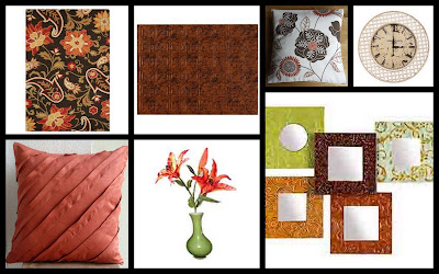 She wanted BOLD, LUSH, and POP in her room, so this is what we came up with for her collage. She also mentioned that she liked the colors rust and green.