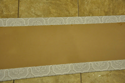 I wanted the valance to be unique, so I decided to use paintable wall paper that you can find at your local Lowes store. The wall paper comes in large rolls, and you can buy all sorts of patterns. This particular roll of wall paper cost me $16.00. The roll was 25 feet of wall paper, and we probably used 11 feet of it. This cost right around $7.00 worth of wall paper.