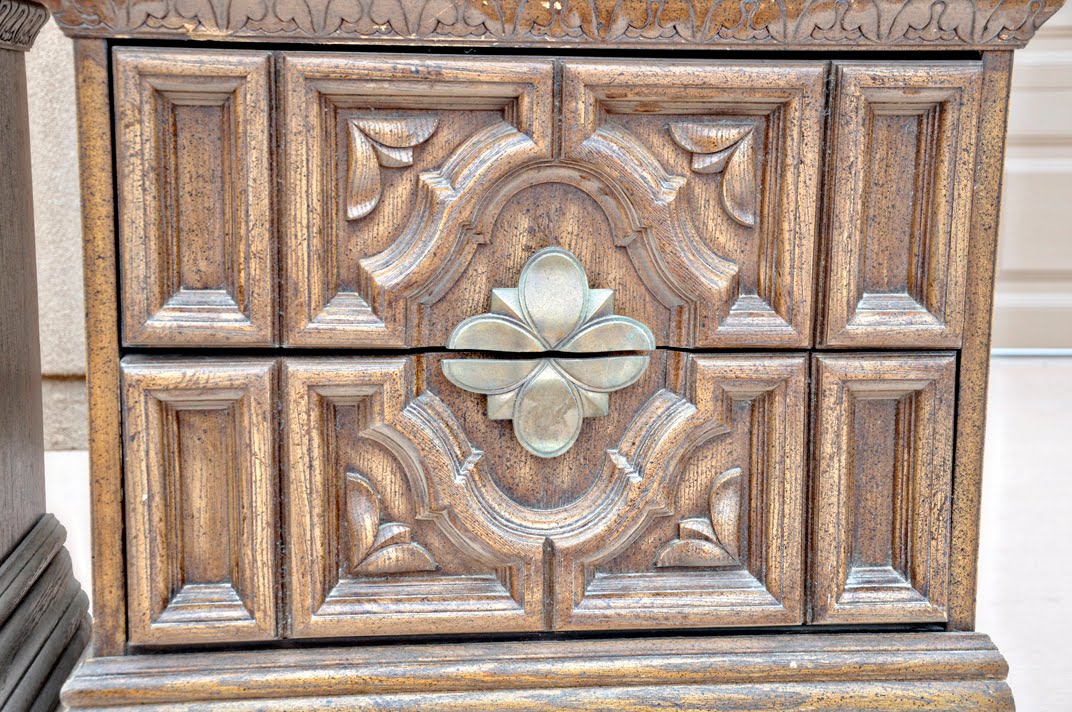 The design was great, and the original hardware was very unique. I love ultra unique pieces! They were in great shape. The drawers were fully functioning, but they needed a good scrub. š You can see the dust in the pictures if you look close.